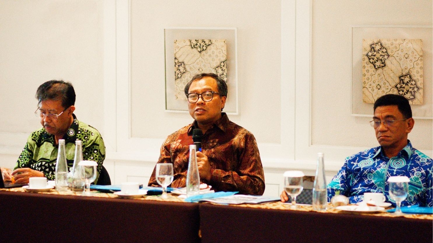 Direktur Eksekutif Subekti memaparkan tren dan tantangan sektor air minum nasional. Ia menyoroti meningkatnya tekanan terhadap sumber air baku akibat urbanisasi dan telah meningkatnya akses air minum layak menjadi sekitar 90 persen rumah tangga, namun akses perpipaan masih rendah di kisaran 22 persen. Kondisi ini membuat masyarakat masih mengandalkan sumur, mata air, atau air isi ulang, dengan tantangan kualitas air baku akibat pencemaran domestik, intrusi air laut, dan perubahan iklim.